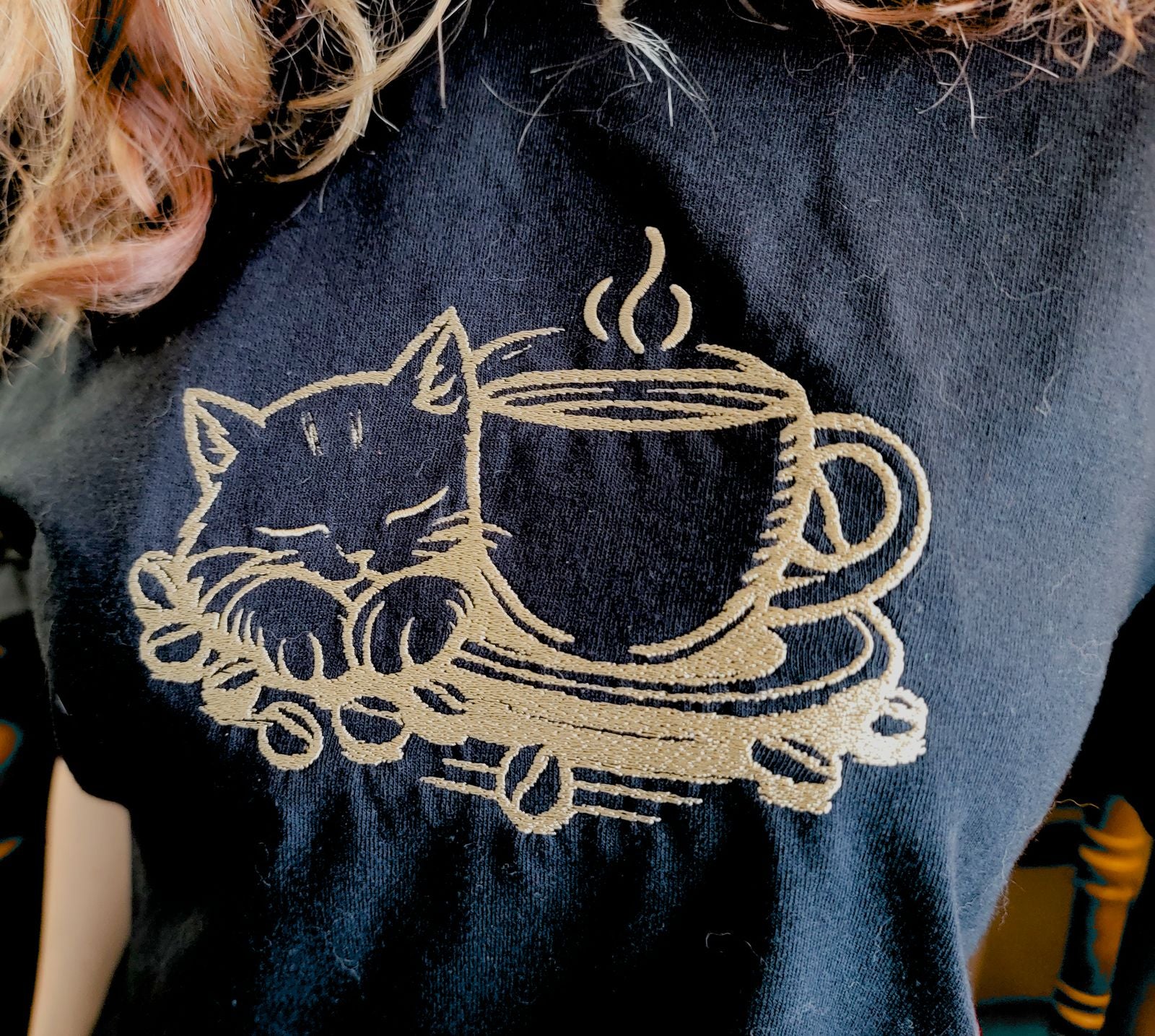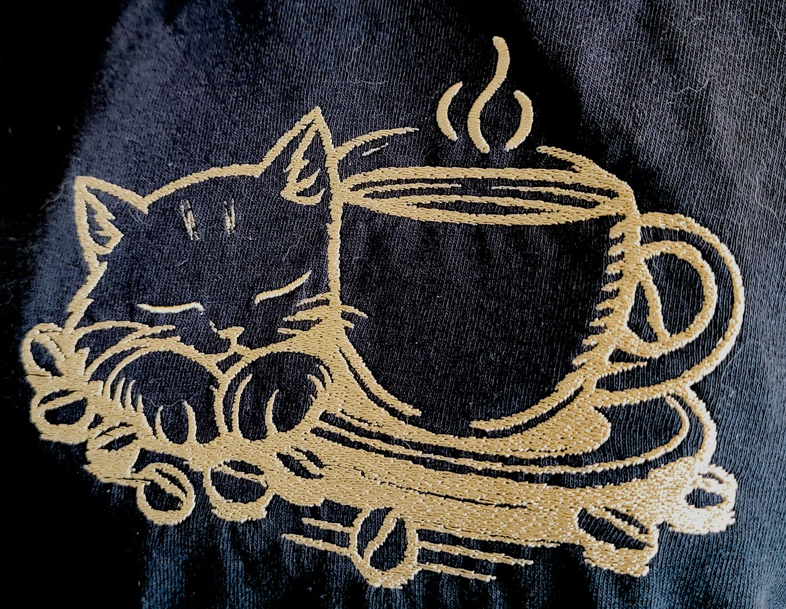 ✨ Embroidered cat & coffee design